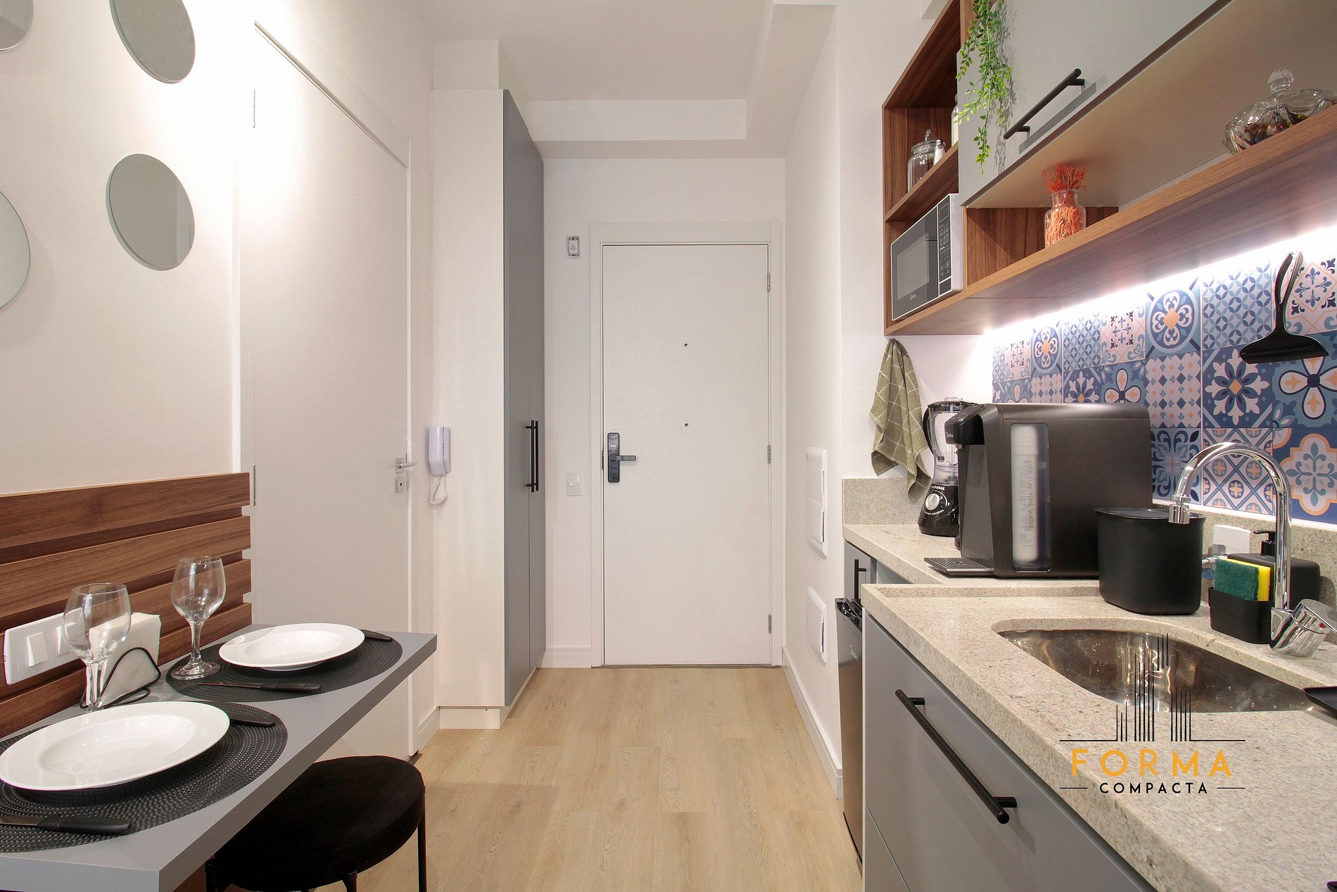 O studio está próximo a shoppings centers, gastronomia, ampla rede de mercados, farmácias, clínicas médicas e hospitais de grande porte. Clique nas fotos e tenha uma descrição de cada cômodo. Cozinha equipada com: louça completa, micro-ondas, frigobar, cafeteira, purificador de água, cooktop de indução e liquidificador